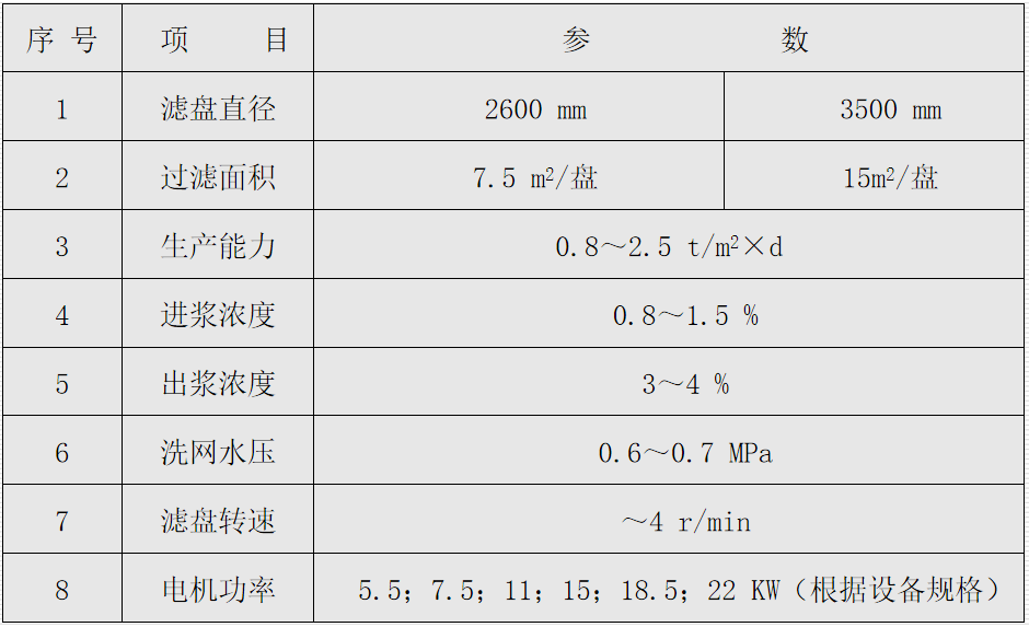 對于游離度較低(打漿度較高)、纖維較短或漿濃度較高的機(jī)械木漿、廢紙漿、葦漿、竹漿、庶渣漿、草漿等在低濃度下均可選用重力盤式濃縮機(jī)來增濃。