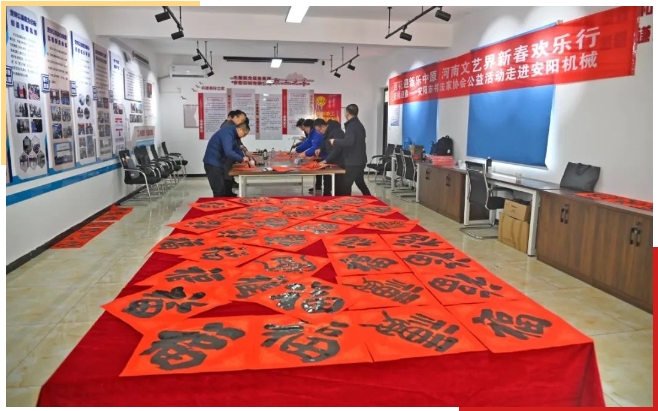 春聯(lián)是一種文化藝術(shù),也是一種文化傳承和情感表達(dá),寄托著人們對美好生活的向往和追求。為深入學(xué)習(xí)貫徹落實習(xí)近平文化思想,進(jìn)一步傳承中華優(yōu)秀傳統(tǒng)文化,豐富廣大職工精神文化生活,2024年1月29日下午安陽市書法家協(xié)會舉辦的“百花迎新樂中原——萬福迎春”義寫春聯(lián)公益活動走進(jìn)中國聯(lián)合裝備集團(tuán)安陽機械有限公司,為企業(yè)一線廣大職工送上新春祝福。