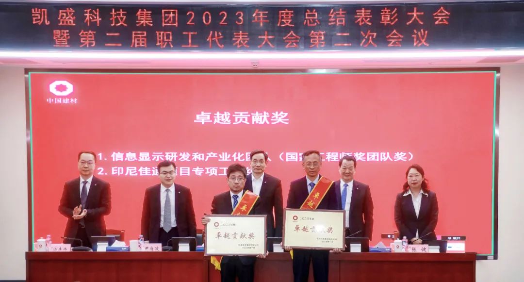 會上,凱盛科技集團黨委副書記陶立綱宣讀了2023年度表彰名單,并主持頒獎。凱盛科技集團副總經(jīng)理王叢笑宣讀了2023年度科技類獲獎情況。會議表彰了凱盛科技集團2023年度卓越貢獻獎、特殊貢獻獎、先進單位、先進集體、勞動模范、先進工作者。