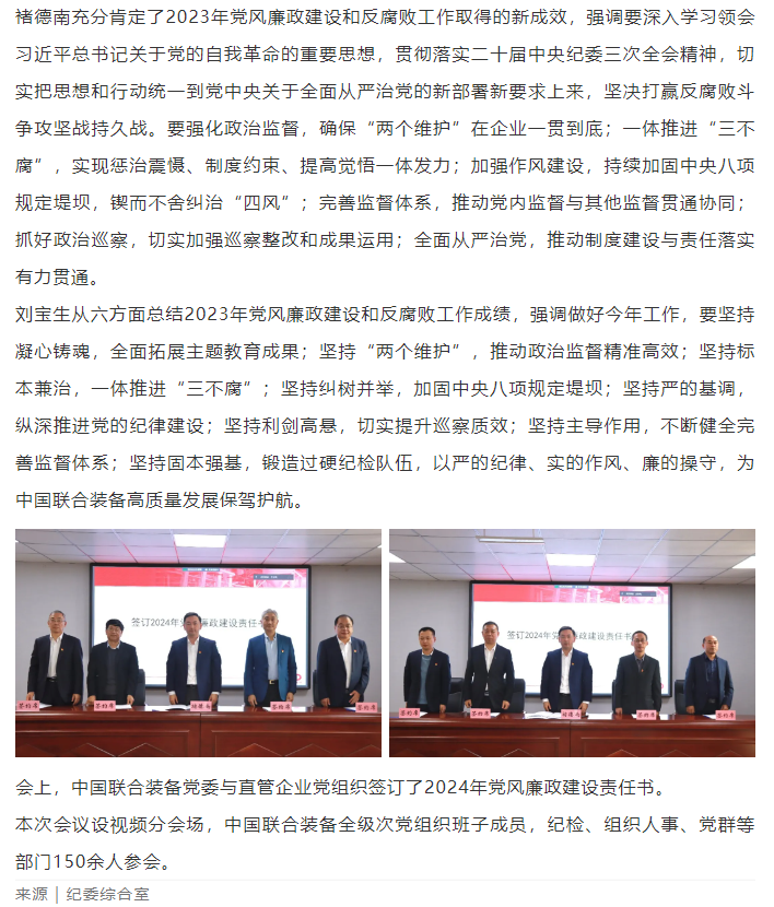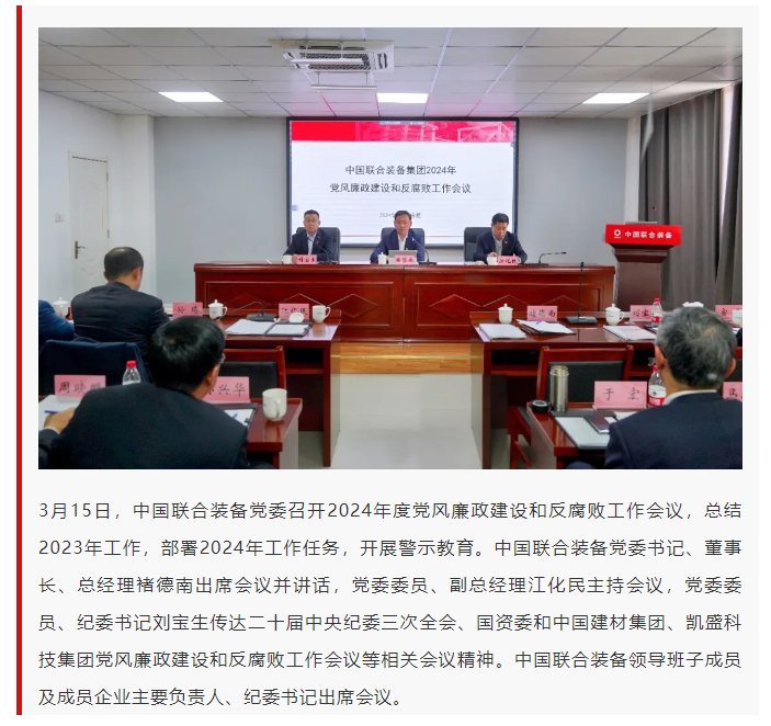 中國聯(lián)合裝備召開2024年度黨風廉政建設和反腐敗工作會議