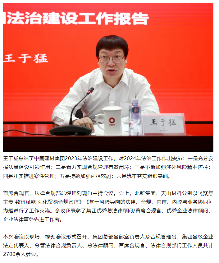 中國建材集團召開2024年法治建設(shè)與合規(guī)管理推進會
